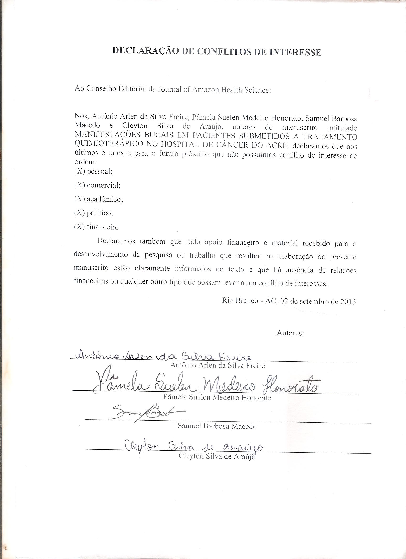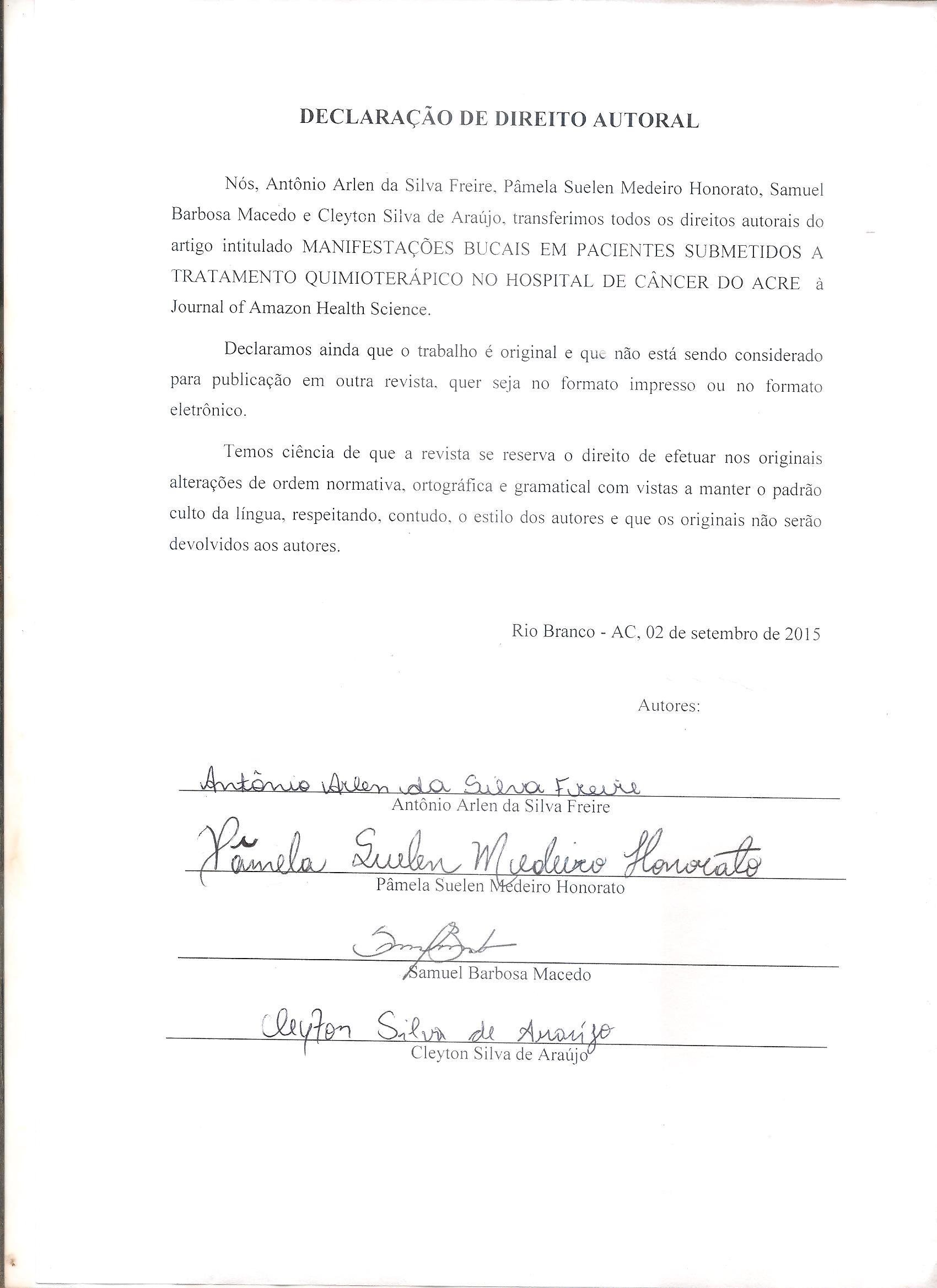 MANIFESTAÇÕES BUCAIS EM PACIENTES SUBMETIDOS A TRATAMENTO QUIMIOTERÁPICO NO HOSPITAL DE CÂNCER DO ACRE